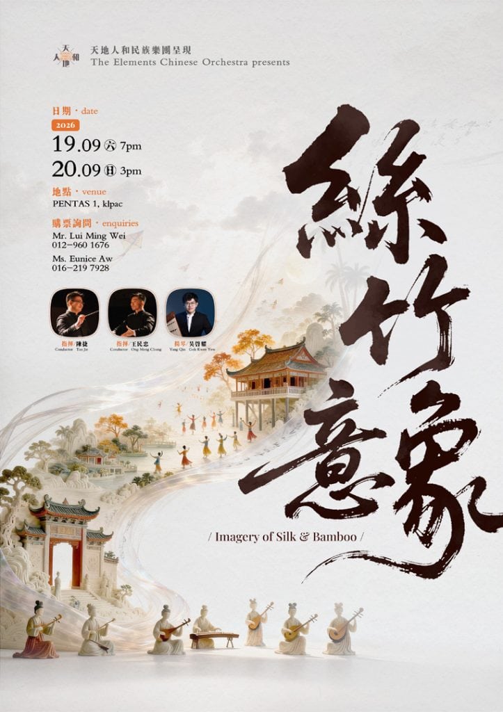Step into a world where melody flows like water and imagination knows no bounds. “Imagery of Silk & Bamboo”, proudly presented by Elements Chinese Orchestra, invites you to embark on an extraordinary journey through the rich cultural landscapes of Asia.